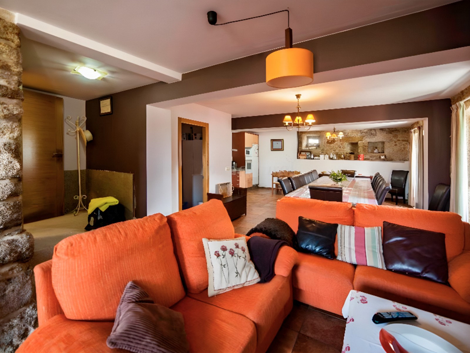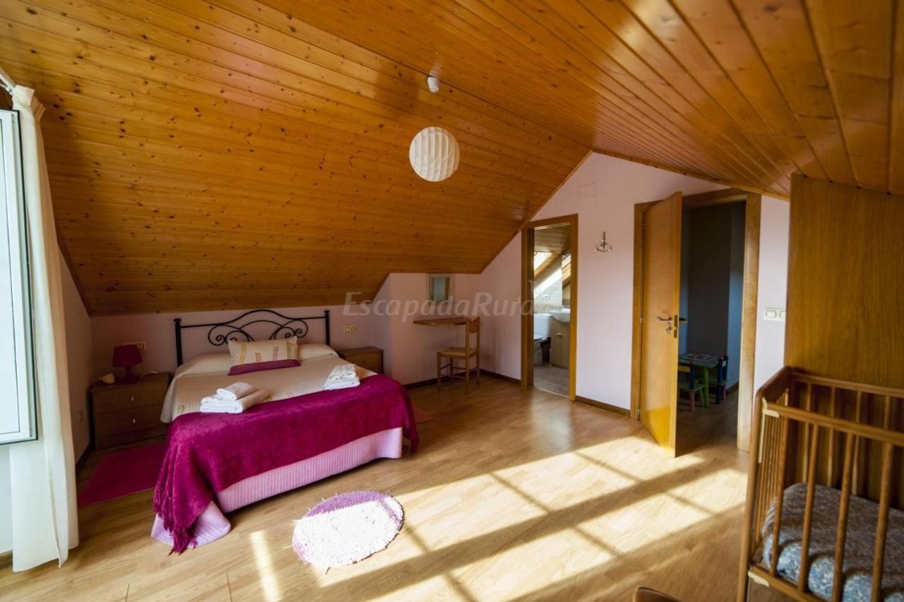 Cuenta con seis habitaciones dobles y cuatro baños, dos de ellos con duchas de hidromasaje. Además, dispone de un salón-cocina con aseo, una sala con sofá cama, una cama nido con dos camas de 80 cm y cunas. En el exterior, los huéspedes pueden disfrutar de una zona con barbacoa, ducha y mesa para comer al aire libre. También se ofrecen cinco bicicletas de montaña para uso de los huéspedes